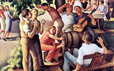 Celentano’s painting Picnic depicts working-class people happily at leisure. The picnic is simple without frills or elegance. A family picnic in the country. the picnic blanket is spread out under a tree. Seems to be several families, and they all cluster on or around the blanket: in the center, a woman, her head back and […] read more