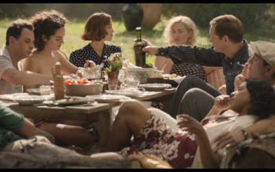 The reenactment gathering in this still from Ellen Kuras’s Lee actually took place in Mpiogins, France, in 1937. See Ellen Karus. Lee. (2023) The screenplay is by Liz Hanna, John Collee, and Marion Hume, based on Antony Penrose’s The Lives of Lee Miller (2021) read more