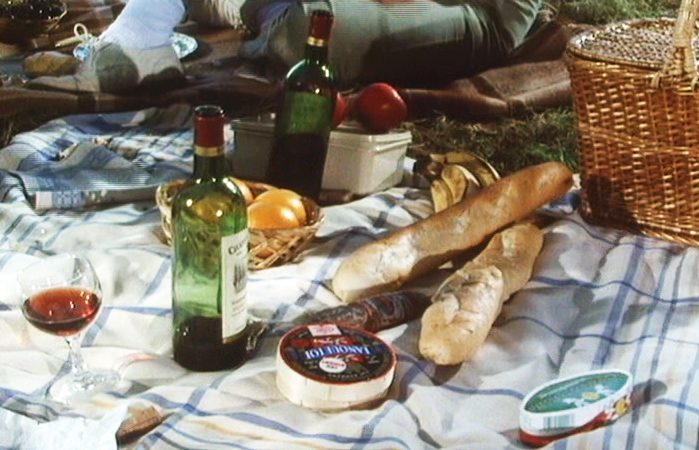 Fowles’s The Ebony Tower is a send-up of Manet’s Le Déjeuner sur l’herbe. Although a boat is in the background, it is uncertain how Manet’s picnickers arrived for their dejeuner sur l’herbe. Fowles’ version of the picnic is definitive; the picnickers walk. The morning after Henry Breasley, a famous painter with goatish qualities, gets very drunk at a dinner party, he contritely suggests that his guest, David Williams, accompany him and his muses on an outing: “Gels suggest a little déjeuner sur l’herbe. Good idea, what? Picnic?” Williams agrees. “By eleven, they were en route. The girls Diana and Anne (stylish, beautiful, and twenty-ish), leading the way with baskets, down a long forest trail; then Williams carrying Breasley’s blue recliner on an aluminum frame ( portable sofa for the senile, as Breasley disparagingly calls it) and then Breasley bring up the rear, a coat folded over his arm, a raffish old wide-brimmed Panama on is head, “engagingly seigniorial, pointing at shadows with his walking stick; lights, special perspective qualities of his forest.”