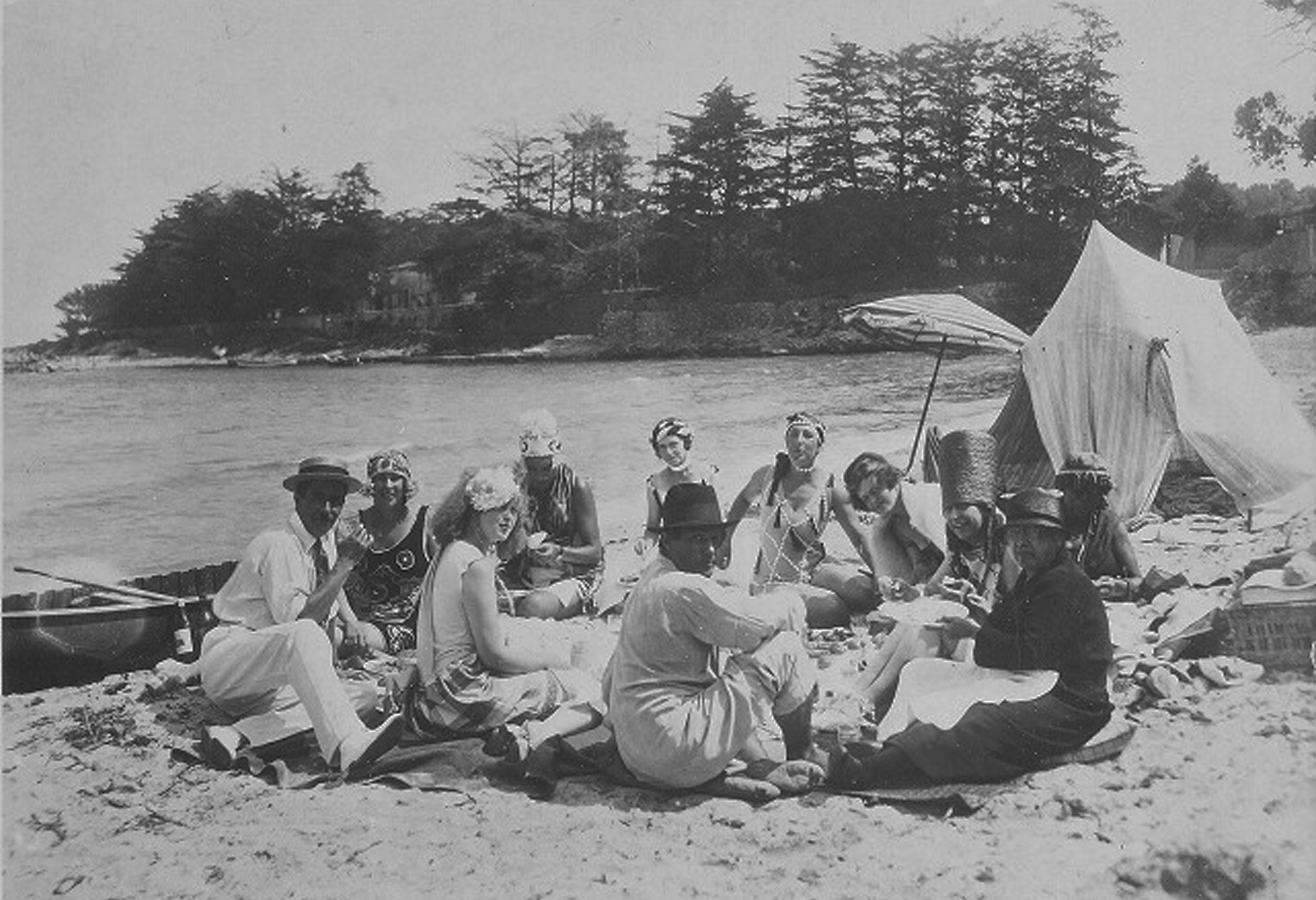 Featured Image: They gathered under striped umbrellas. Sara Murphy, Olga Picasso, Pablo Picasso (in the black fedora). La Garoupe. 1923-1925? Collection of Honoria Murphy Donnelly. Gerald and Sara Murphy Papers, Yale Collection of American Literature, Beinecke Rare Book and Manuscript Library
