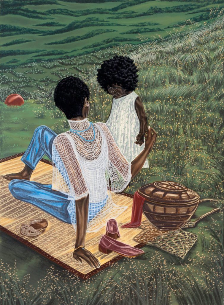 Toyin Ojih Odutola. Picnic on the Grounds ( 2017-18). Pastel, charcoal and pencil on paper