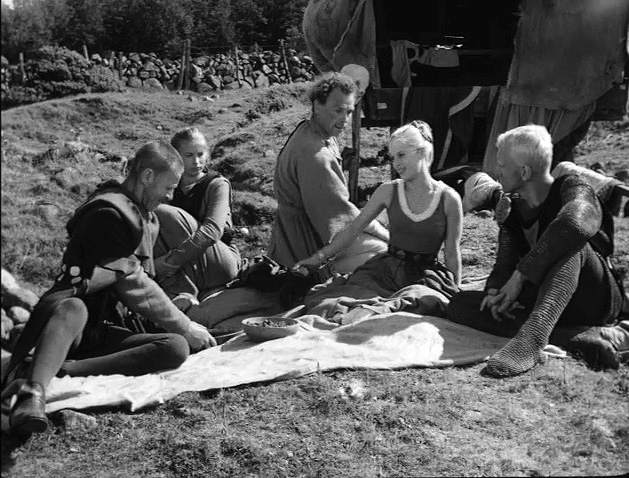 Ingmar Bergman. The Seventh Seal aka Det sjunde inseglet. The screenplay is by Ingmar Bergman (1957). During an interlude, the Block and the troupe have a picnic, which brings only a temporary respite, defying for the moment Death’s inevitability. Max von Sydow as Block sits far left.