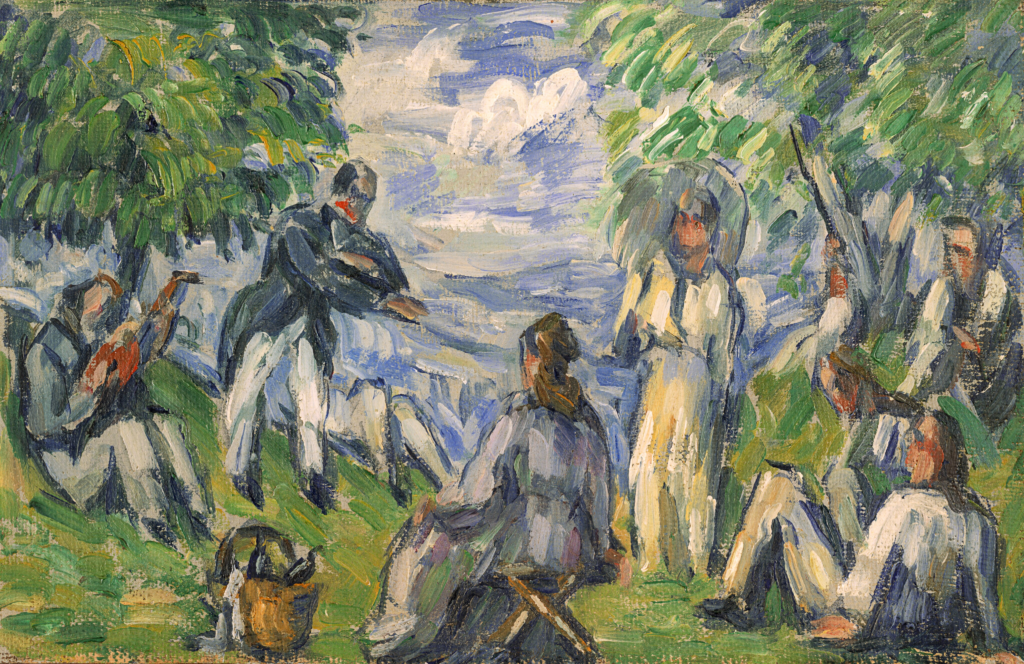 Paul Cezanne. Partie de compagnie aka Le déjeuner sur l’herbe. oil on canvas (1876-1877) Featured Image: Georges Seurat. Un dimanche après-midi à l’Île de la Grande Jatte. aka A Sunday on La Grande Jatte (1884-1886). oil on canvas. Art Institute of Chicago